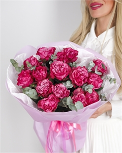 Букет из 101 розовой кустовой розы 60см с оформлением
