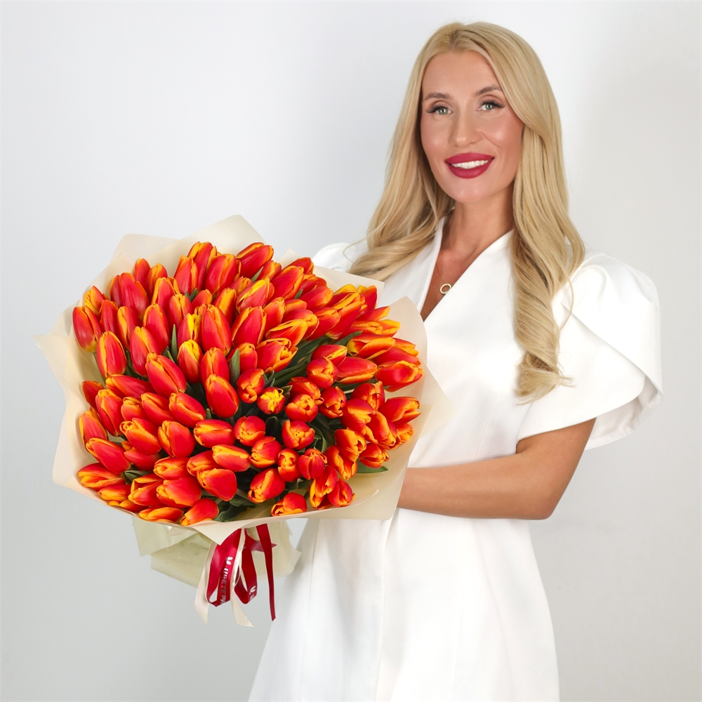 Букет из 101 красно-оранжевого тюльпана (Денмарк)