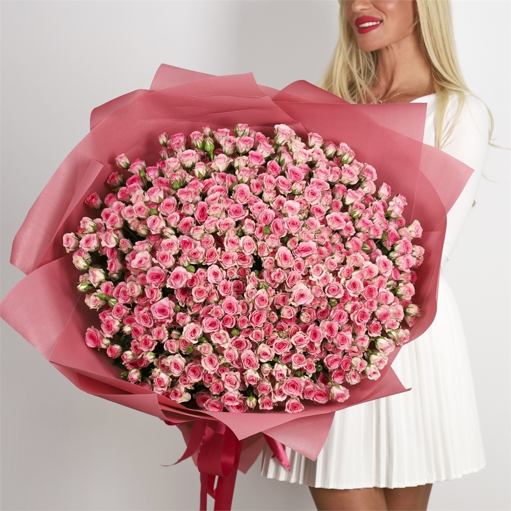 Букет из 101 розовой кустовой розы 60см с оформлением купить в Перми за 34 253 руб.