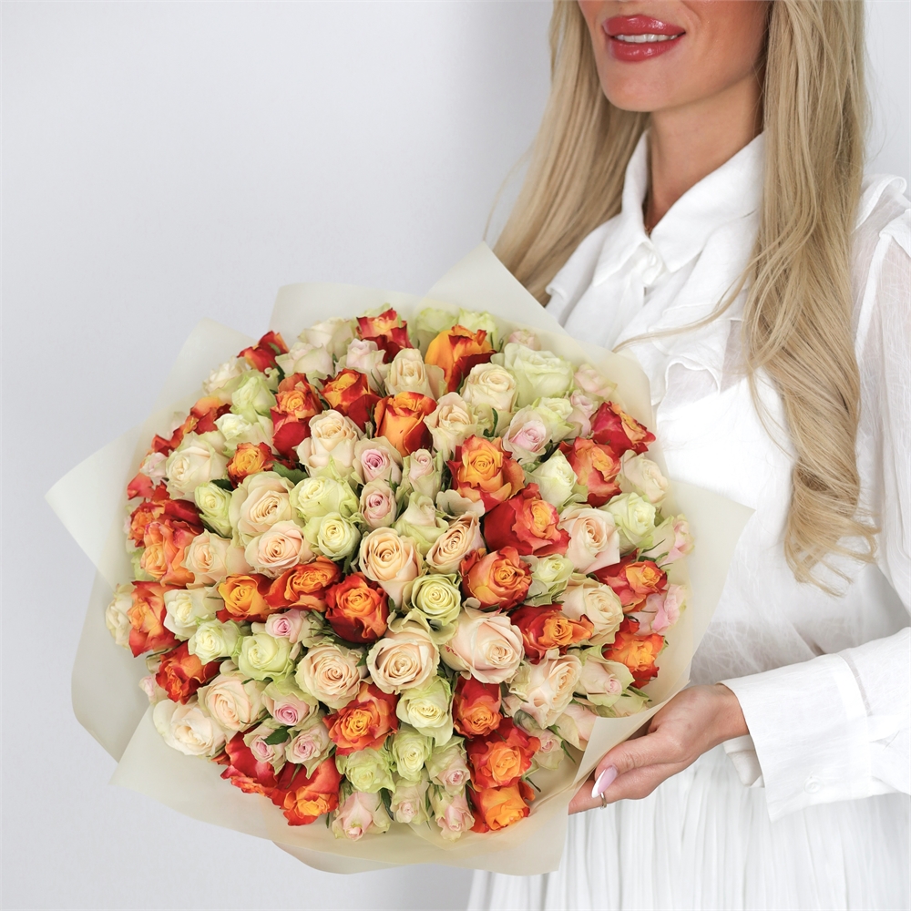 Букет из 101 кенийской розы микс в нежном оформлении!