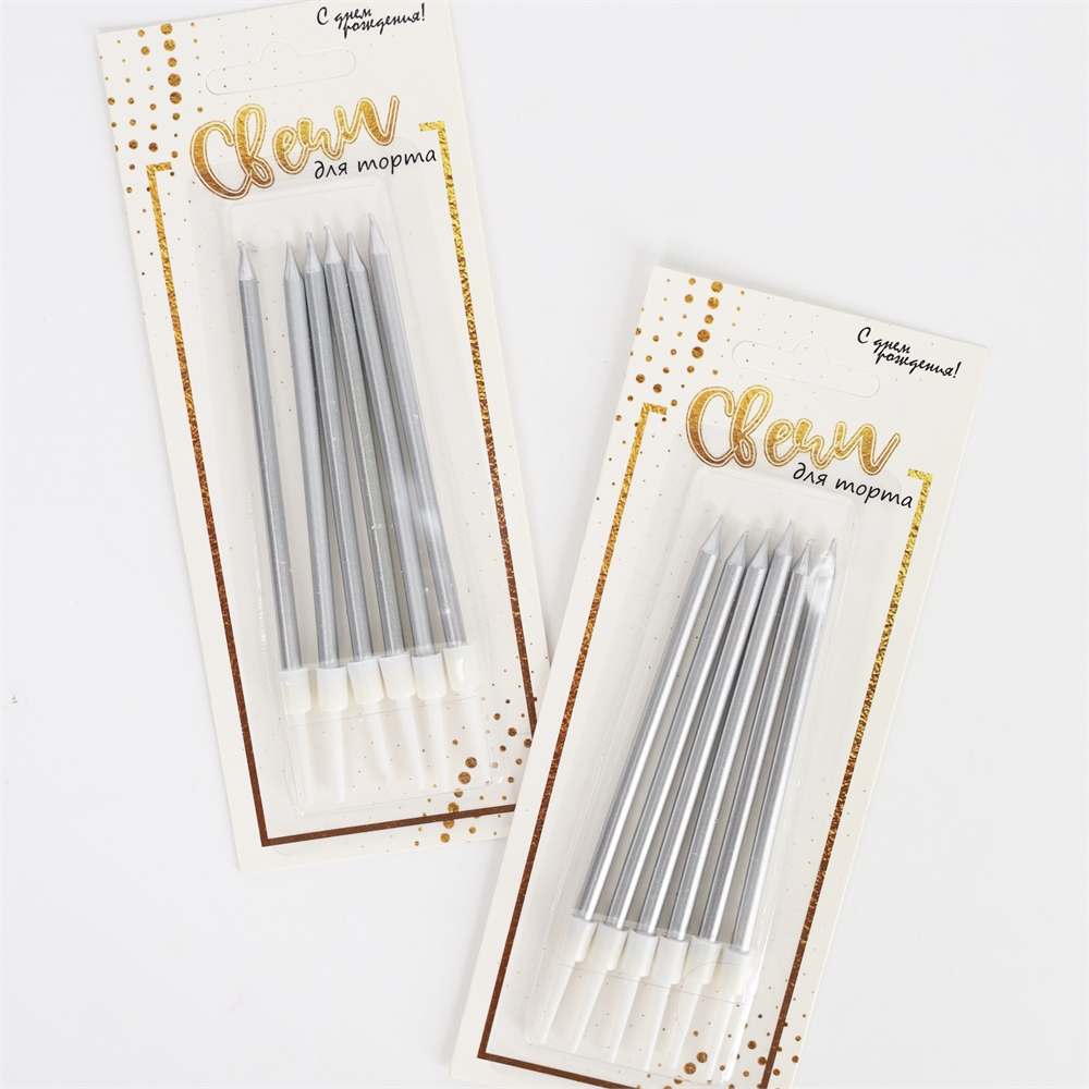 Набор свечей на торт 6 шт (серебро) купить в Перми за 119 руб.