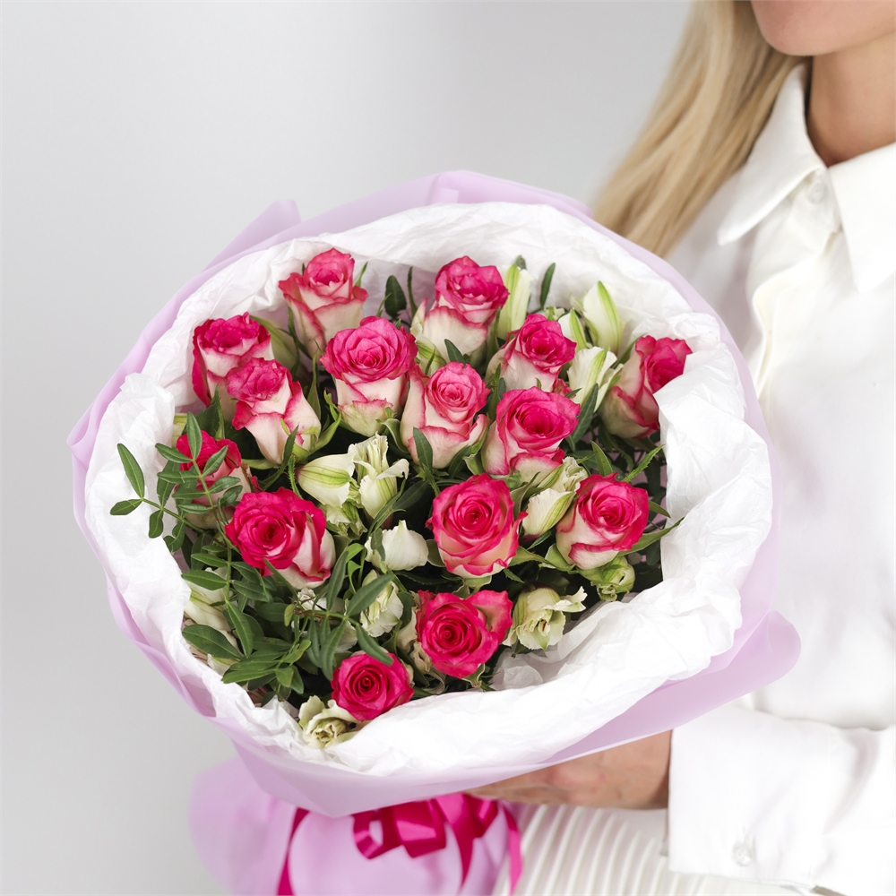 Фото на сайте могут отличаться от реальности. Некоторые цветы могут быть заменены на аналогичные в зависимости от сезонности. Цветовая гамма букета сохранится.Цвет упаковки и ленты можно заменить на любой из нашей коллекции. Ассортимент уточняйте при оформлении заказа.